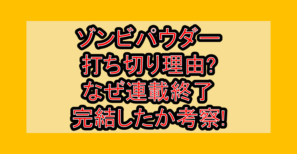 ゾンビパウダー打ち切り理由?なぜ連載終了・完結したか考察! 公開日:2026年1月15日 漫画 「ゾンビパウダー」は、あの久保帯人先生が描いた今での語られる人気作品ですが、「打ち切りで連載終了した?」と言われています。 そんな「ゾンビパウダー」は本当に打ち切りなのでしょうか?もしそうだとすれば、打ち切 […] 続きを読む