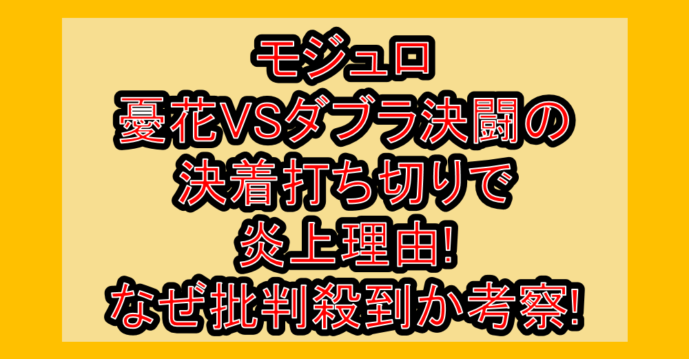 モジュロ憂花VSダブラ決闘の決着が打ち切り炎上理由!なぜ批判殺到か考察! 公開日:2026年2月24日 漫画 「呪術廻戦モジュロ」は人気漫画「呪術廻戦」のスピンオフで「憂花VSダブラ」の決闘が最高潮に盛り上がっているが、決着の仕方が打ち切りすぎて炎上したようです。 そんな「呪術廻戦モジュロ」は「憂花VSダブラ」の決 […] 続きを読む