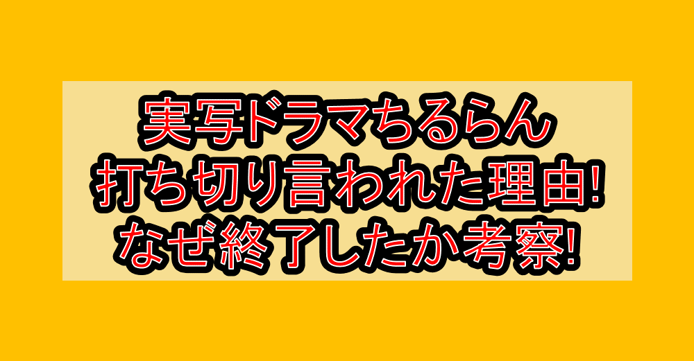 実写ドラマちるらん打ち切り言われた理由!なぜ終了したか考察! 公開日:2026年3月28日 漫画 ドラマ「ちるらん」は原作漫画で実写化されたものですが、「打ち切りで終了したのでは?」と言われてしまいます。 そんな「ちるらん」は本当に打ち切りなのでしょうか?もしそうだとすれば、打ち切り理由は一体何なのでし […] 続きを読む