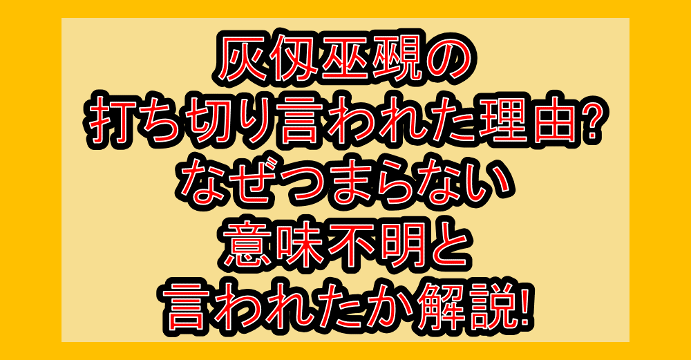 灰仭巫覡の打ち切り言われた理由?なぜつまらない・意味不明と言われたか解説! 更新日:2025年10月14日 公開日:2025年5月6日 漫画 「灰仭巫覡」は圧倒的画力で魅了する大暮維人先生の作品ですが、「打ち切りで連載終了するのでは?」と心配されています。 そんな「灰仭巫覡」連載終了は本当に打ち切りなのでしょうか? もしそうだとすれば、打ち切り理 […] 続きを読む